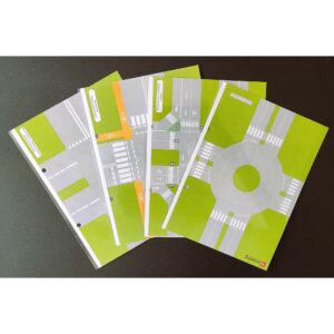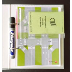 - 8 skrzyżowań w laminacie (4 dwustronne kartki) – możliwość pisania i rysowania objaśnień markerem oraz łatwe ścieranie