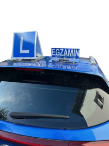 Dodatkowy emblemat na dach samochodu, informujący innych kierowców o prowadzeniu egzaminu państwowego na prawo jazdy.